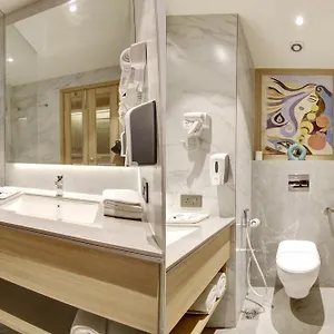 The rooms at East Park Delhi include a trouser press and air conditioning. Some of them comprise a balcony and a dining area, furnished with a sofa and a writing desk. Guests can make use of a minibar fridge, coffee and tea makers, and relax with free Wi-Fi and a flat-screen TV with satellite channels. Offering a separate toilet, the bathrooms are also fitted with hair dryers and bath sheets. You can enjoy views of the city.