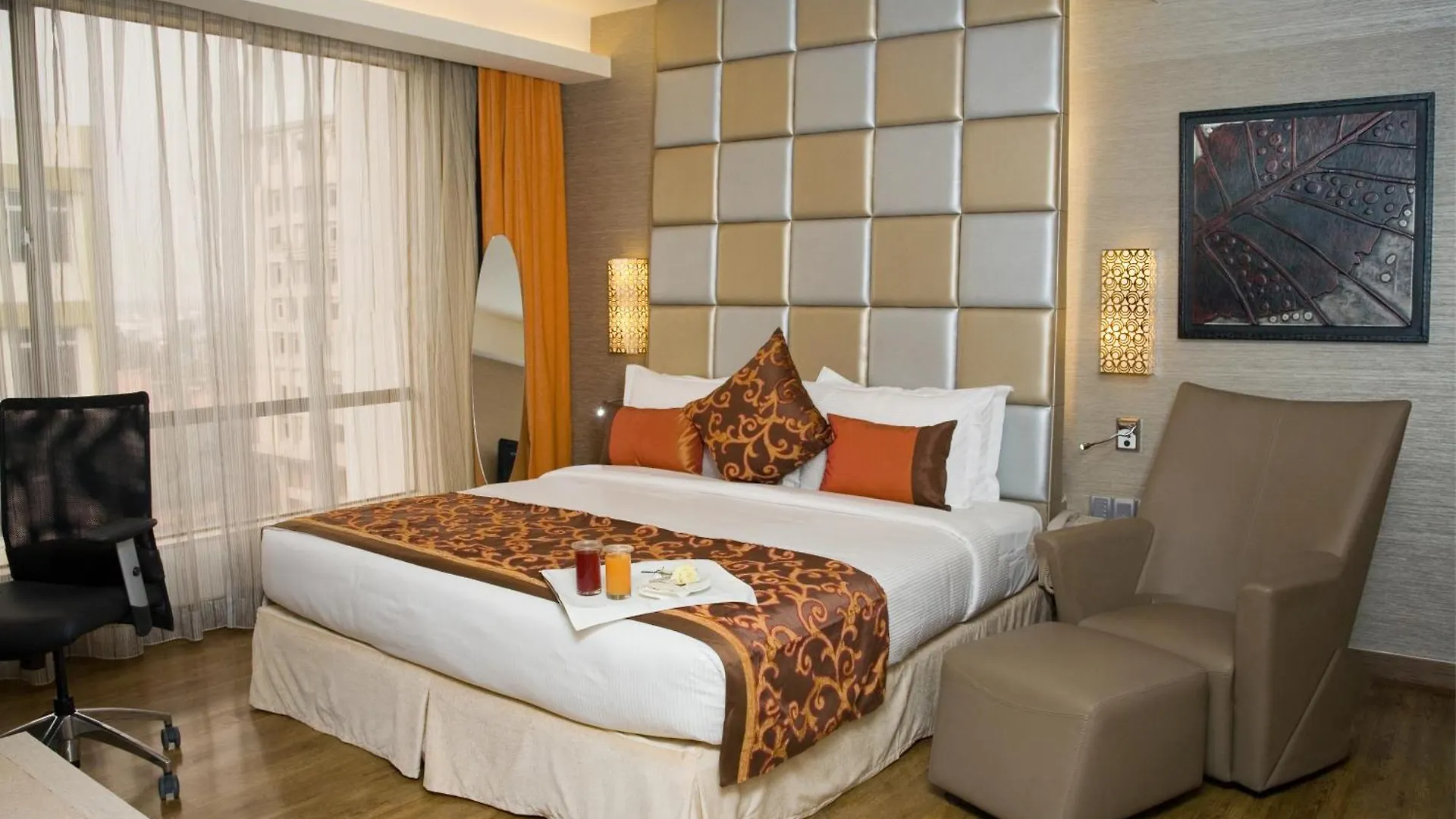 Le camere climatizzate sono fornite di una cassetta di sicurezza e rilevatori di fumo per manternerti al sicuro. Inoltre, dispongono di una TV a schermo piatto con canali satellitari, nonché di un mini frigobar e servizi per la preparazione di tè/caffè. Offrono dei bagni dotati di una cabina doccia e un WC alla francese e asciugacapelli e teli da bagno. Le camere dell'hotel includono cuscini in piuma d'oca e lenzuola di cotone egiziano.