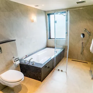 The accommodation has 23 rooms with views of the pool, a safe box, a balcony, and a sofa set. They feature a tub, a separate toilet, and a shower in the bathrooms.